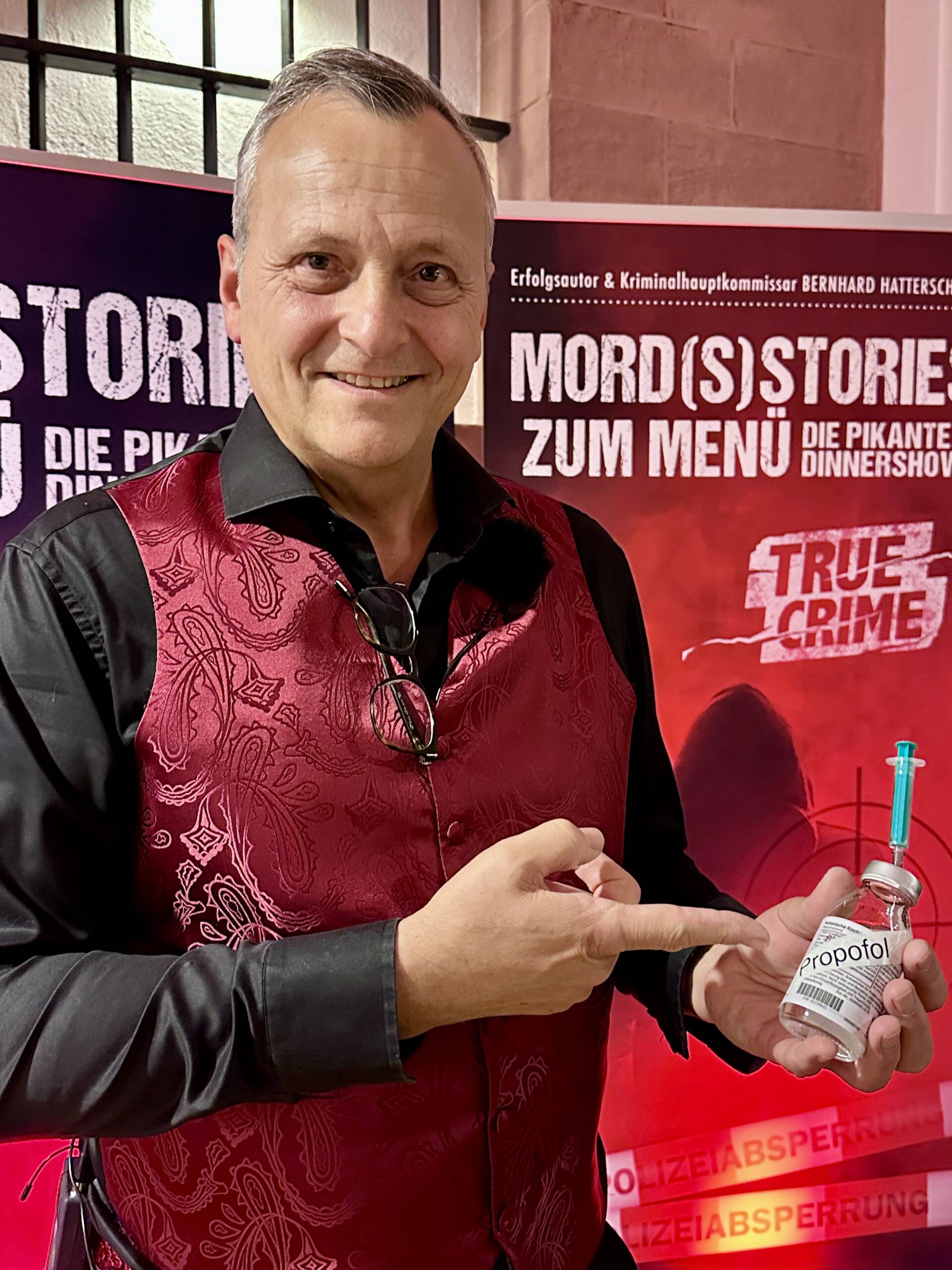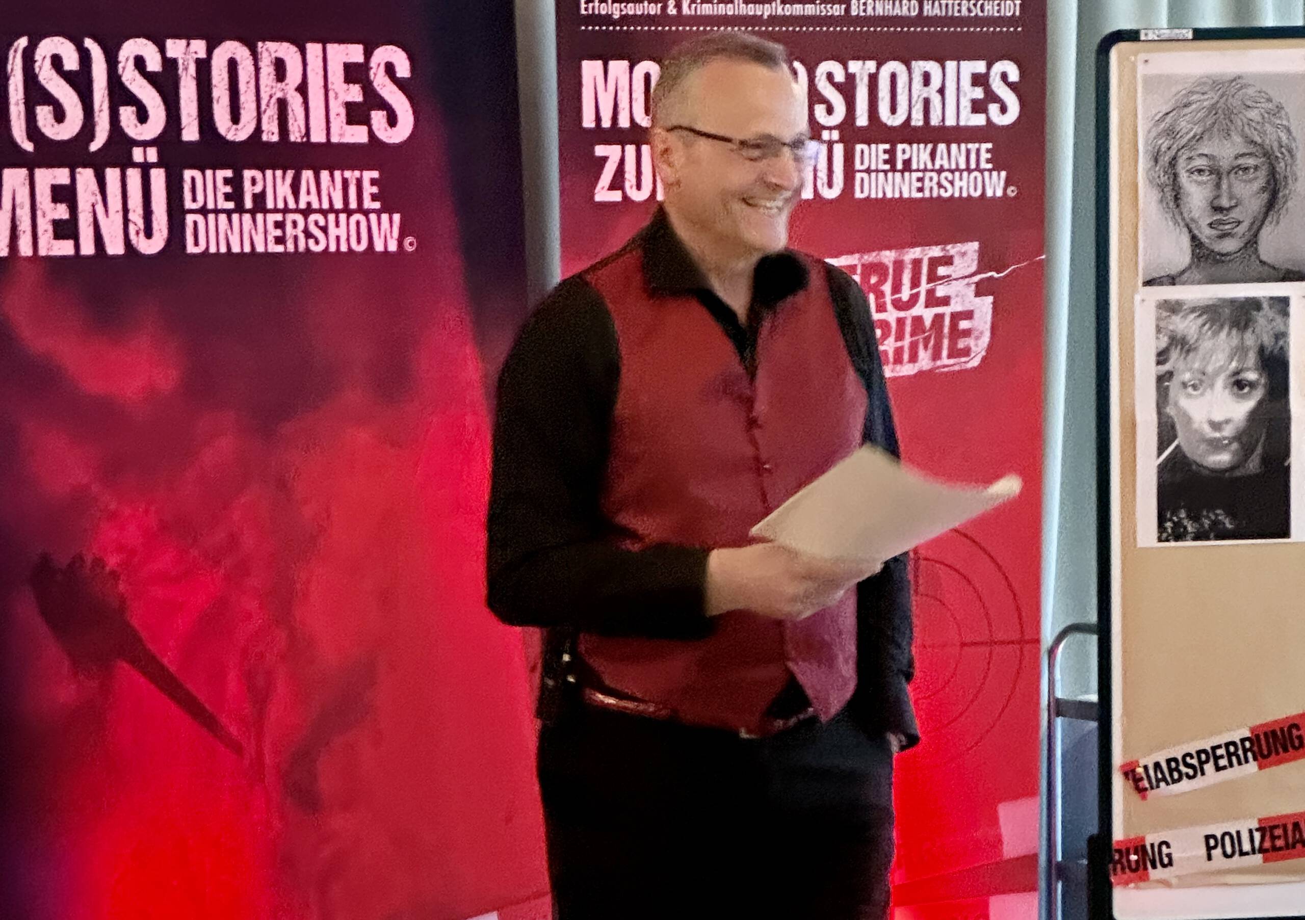 Bernhard Hatterscheidt ist DER Hauptkommissar – und nur bei uns gibt der Erfolgsermittler und Buchautor exklusive Einblicke in sein Berufsleben. Er erzählt packende Mord(s)stories, berichtet von spektakulären Ermittlungen und nimmt Sie mit auf eine fesselnde Reise in die Welt schwerer Verbrechen. Unterstützt wird er dabei von seiner Ehefrau Miriam Hatterscheidt, die in verschiedene weibliche Rollen schlüpft und ihm auf der Bühne mit Stimme und Spielfreude zur Seite steht. Während der interaktiven Show genießen Sie ein grandioses Mehr-Gänge-Menü und tauchen tief ein in die spannendsten Kriminalfälle seiner Karriere. Die TRUE CRIME Dinnershow erleben Sie exklusiv in zwei mörderisch guten Varianten: „Eisbad in der Truhe“ und „Ein Kopf per Nachnahme“. ► Verdächtig gut, verboten lecker – und 100 % authentisch!